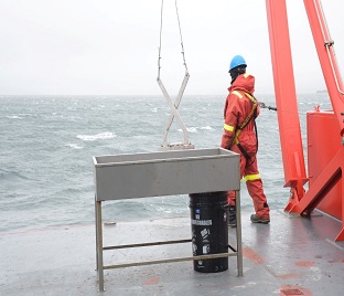 En el marco del proyecto del INGEMMET, se realizaron tres estaciones de muestreo, en las cuales se desplegó la roseta oceanográfica para la medición de parámetros físicos y la toma de muestras de agua; asimismo, se efectuó el despliegue de la draga con la finalidad de recolectar muestras del fondo marino.