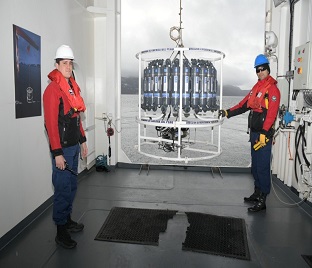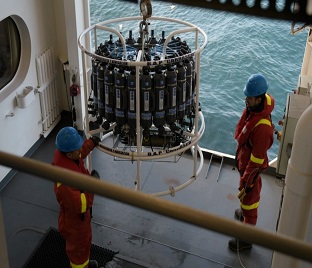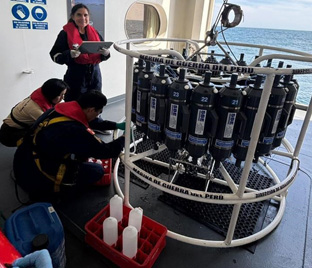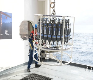 Se realizó el despliegue de la roseta oceanográfica hasta los 1,500 m. de profundidad, la cual integra un sistema CTD, permitiendo la medición de las variables físicas de la columna de agua. Asimismo, mediante las botellas Niskin se efectuó la recolección de muestras de agua, información que resulta fundamental para la calibración de los sensores del flotador ARGO “Provor JUMBO CTS5”.