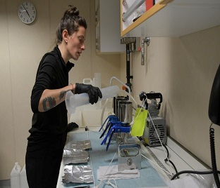En las estaciones de muestreo N° 43, 42 y 38, ubicadas frente a las islas Piloto Pardo, se obtuvieron muestras de agua, sedimento y krill, con la finalidad de cumplir con los estudios de la Universidad Nacional Agraria La Molina; en ese sentido, se tomaron muestras de agua a distintas profundidades, las cuales fueron filtradas y conservadas, y además se recolectó krill mediante lances de red, quedando el material procesado y guardado para su análisis posterior.