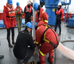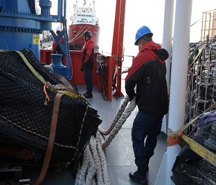 dos puntos aptos para el piston corer, el equipo se aproximó al primero, donde el despliegue de la draga confirmó la presencia de sedimento fino, permitiendo el posterior muestreo con un testigo