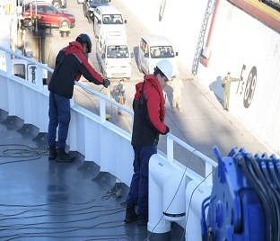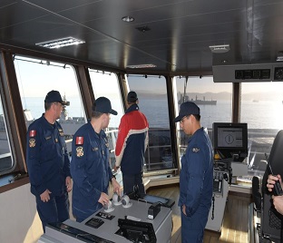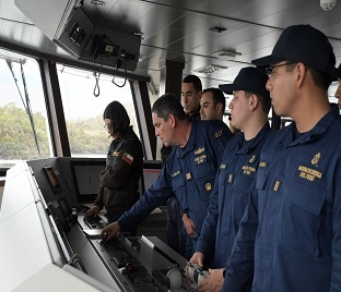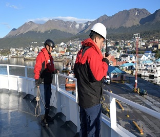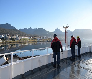Se efectuó el embarque de los prácticos chilenos, quienes acompañarán al buque durante el tránsito por los canales chilenos, con la