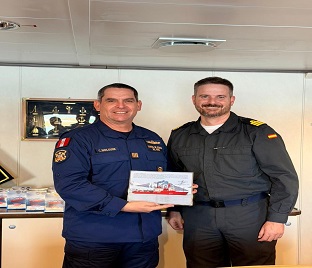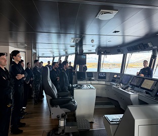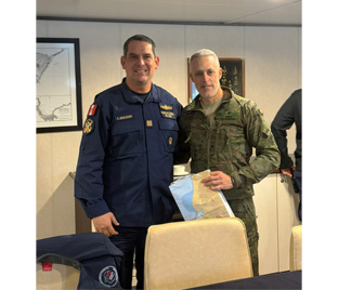 Se recibió a bordo la visita de oficiales de la dotación del buque español “Hespérides”, quienes recorrieron las principales áreas del buque y conocieron sus capacidades de apoyo operacional, logístico y científico, permitiendo el intercambio de información y fortaleciendo los vínculos de cooperación y camaradería en el ámbito antártico.