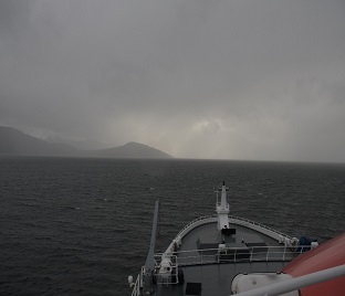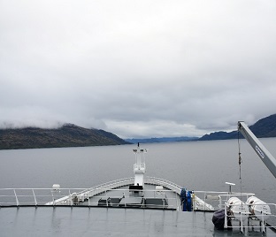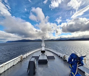 Finalizado el tránsito por el Paso Drake, el buque ingresó a los canales interiores chilenos; asimismo, se efectuó el embarque de prácticos chilenos, quienes brindarán apoyo a la navegación durante el recorrido hasta el puerto de Punta Arenas de Chile.