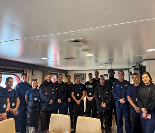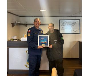 Se recibió a bordo la visita de personal de la Base Antártica Española “Gabriel de Castilla”, así como de oficiales y tripulantes del buque brasileño “Maximiliano”; durante el recorrido se presentaron las principales áreas del buque y sus capacidades de apoyo operacional, logístico y científico, además de compartir información sobre las actividades que se vienen desarrollando durante la campaña. Esta visita permitió fortalecer los vínculos de cooperación y camaradería entre dotaciones, en concordancia con el espíritu de colaboración que caracteriza las operaciones antárticas.