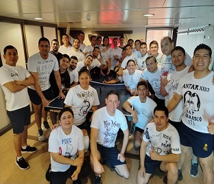 Se realizó un ejercicio de zafarrancho de abandono de buque, con la participación de oficiales, tripulación, investigadores y oficiales invitados de armadas extranjeras, con la finalidad de entrenar al personal en los procedimientos establecidos para situaciones de emergencia, verificar los tiempos de reacción y asegurar la correcta coordinación y ejecución de las medidas de seguridad correspondientes.