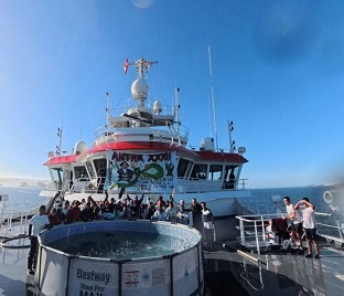 Concluidas las maniobras, el buque puso rumbo a la Bahía Fildes para los últimos lances programados del crucero.
