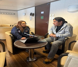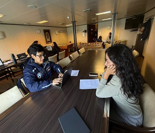 Se recibió a bordo la visita del personal de la Estación Científica Antártica “Machu Picchu”, quienes recorrieron diversos compartimentos del buque y conocieron los laboratorios y capacidades