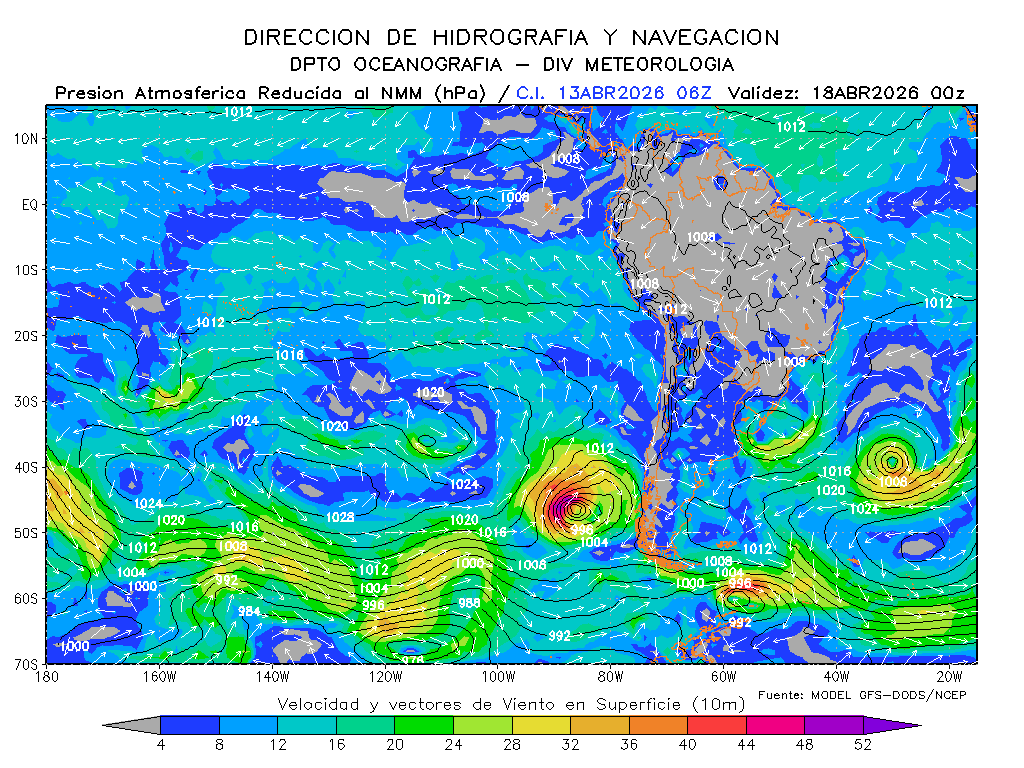 El modelo GFS-DODS/NCEP muestra que los vientos del sureste disminuirían la intensidad de su magnitud frente a la costa sur para los próximos días, se mantendrían frente a la costa norte e incrementaría frente a la centro, presentándose por debajo de lo normal frente a la costa centro de Perú y por debajo de lo normal frente a la norte y sur. El anticiclón del Pacífico sur tendría una composición zonal con un desarrollo con dirección noreste y manteniendo su intensidad, esperándose dentro de su normal y en posición ligeramente al oeste de su normal.