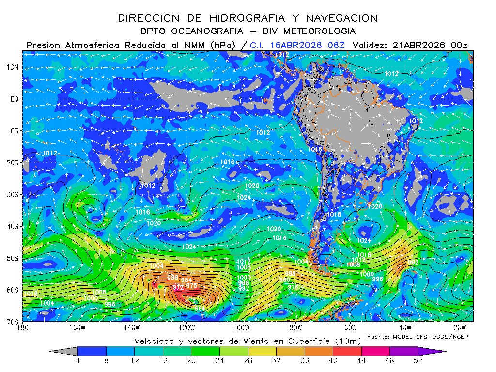 . Fuente: Datos: modelo WWATCH III; Grafico: DHN